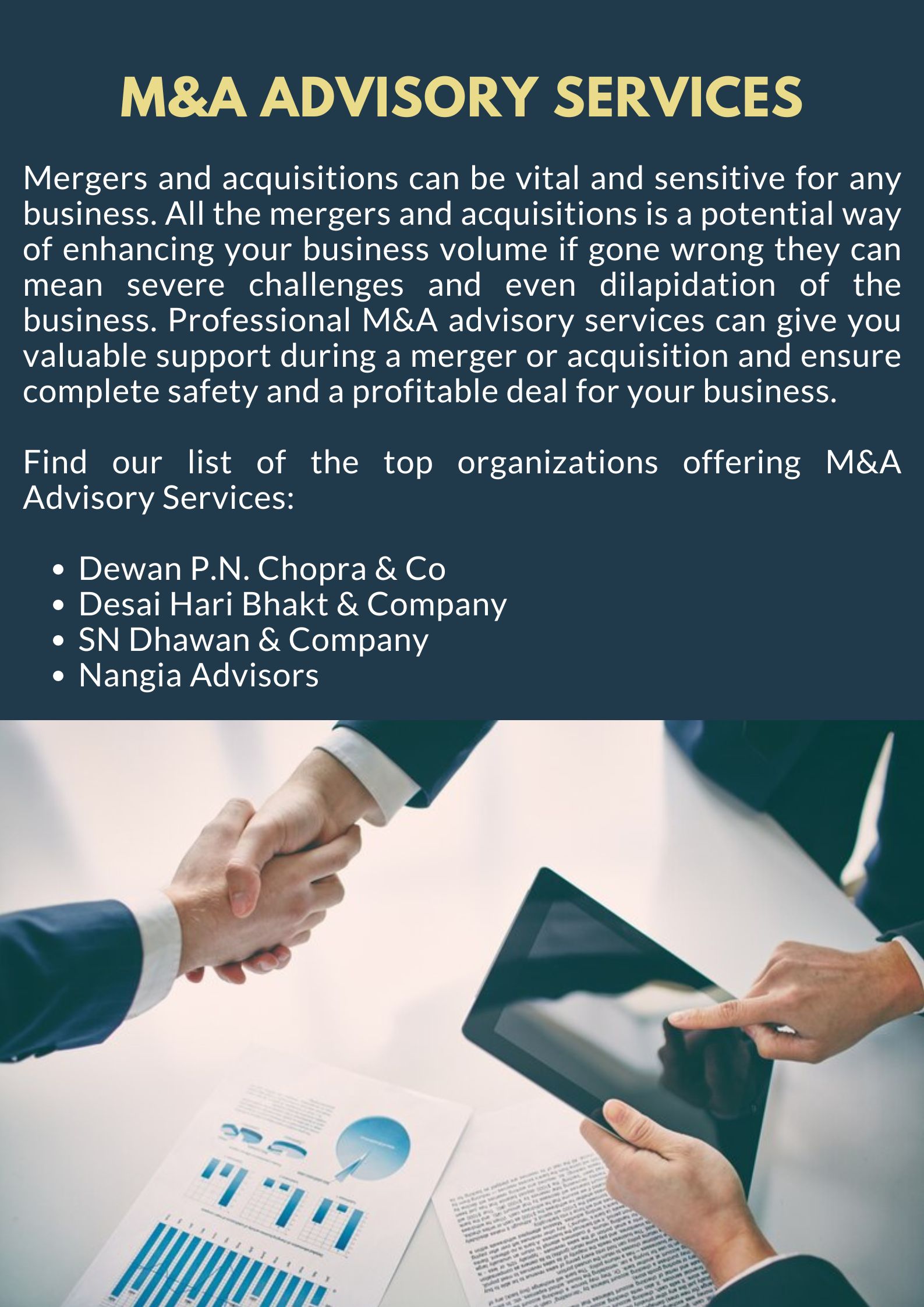 Descripción Mergers and acquisitions can be vital and sensitive for any business. All the mergers and acquisitions is a potential way of enhancing your business volume if gone wrong they can mean severe challenges and even dilapidation of the business. Professional M&A advisory services can give you valuable support during a merger or acquisition and ensure complete safety and a profitable deal for your bu...