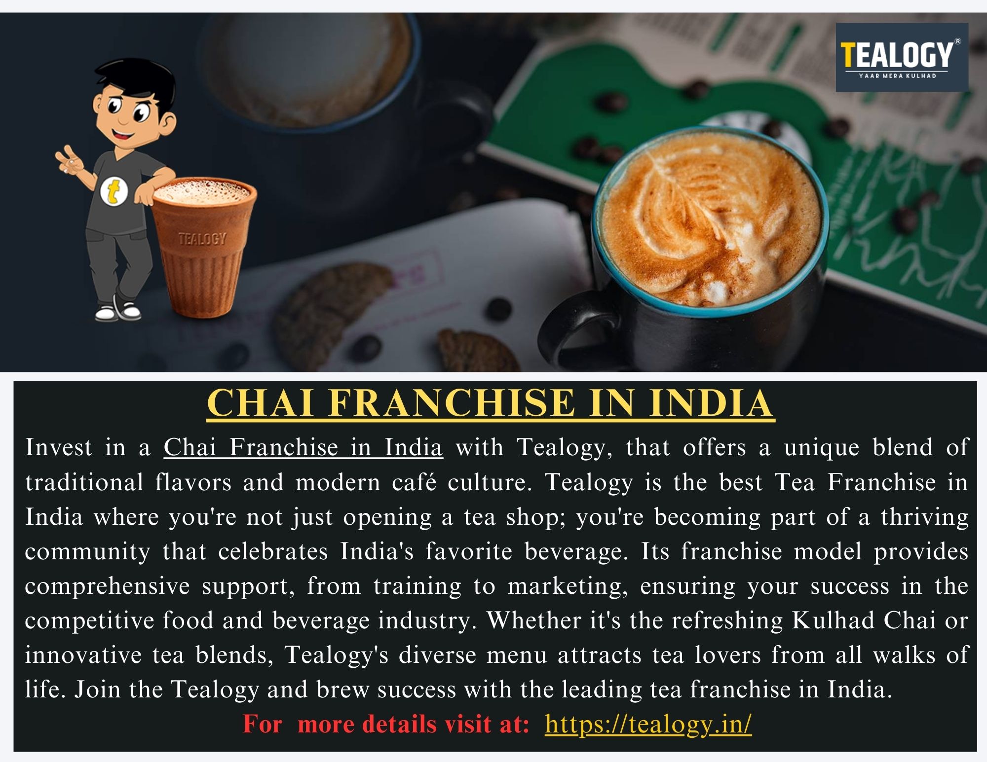 | Descripción | Invest in a Chai Franchise in India with Tealogy, that offers a unique blend of traditional flavors and modern café culture. Tealogy is the best Tea Franchise in India where you're not just opening a tea shop; you're becoming part of a thriving community that celebrates India's favorite beverage. For more details kindly visit https://tealogy.in/ |