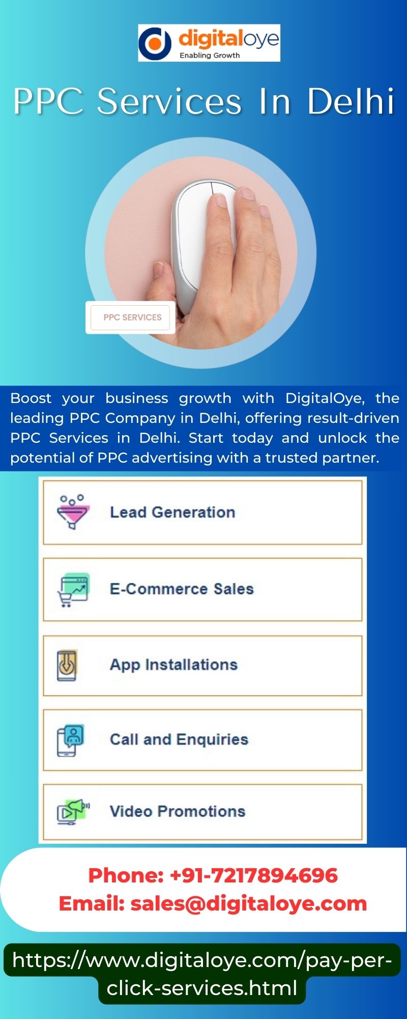 | Descripción | Boost your business growth with DigitalOye, the leading PPC Company in Delhi, offering result-driven best PPC Services in Delhi. Our expert team crafts tailored pay-per-click campaigns designed to maximize ROI and drive targeted traffic to your website. Start today and unlock the potential of PPC advertising with a trusted partner. For more visit https://www.digitaloye.com/pay-per-click-service... |