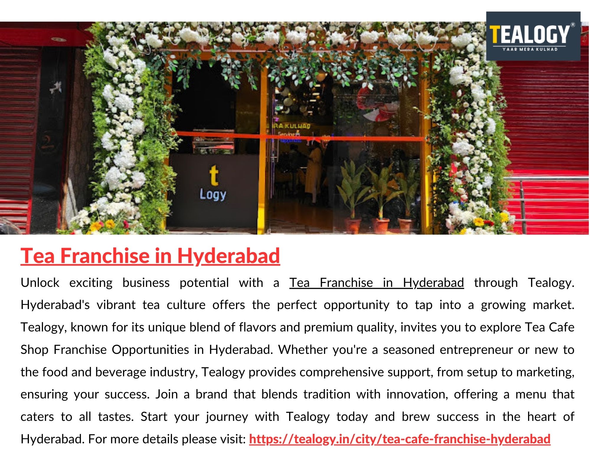 | Descripción | Tealogy offers an exciting Tea Franchise in Hyderabad, bringing India’s love for chai to new heights. With our proven business model and premium tea blends, entrepreneurs can explore the best Tea Cafe Shop Franchise Opportunities in Hyderabad. Tealogy stands out for its innovative menu, including authentic kulhad chai, fusion teas, and quick snacks, attracting tea enthusiasts of all ages. For m... |
