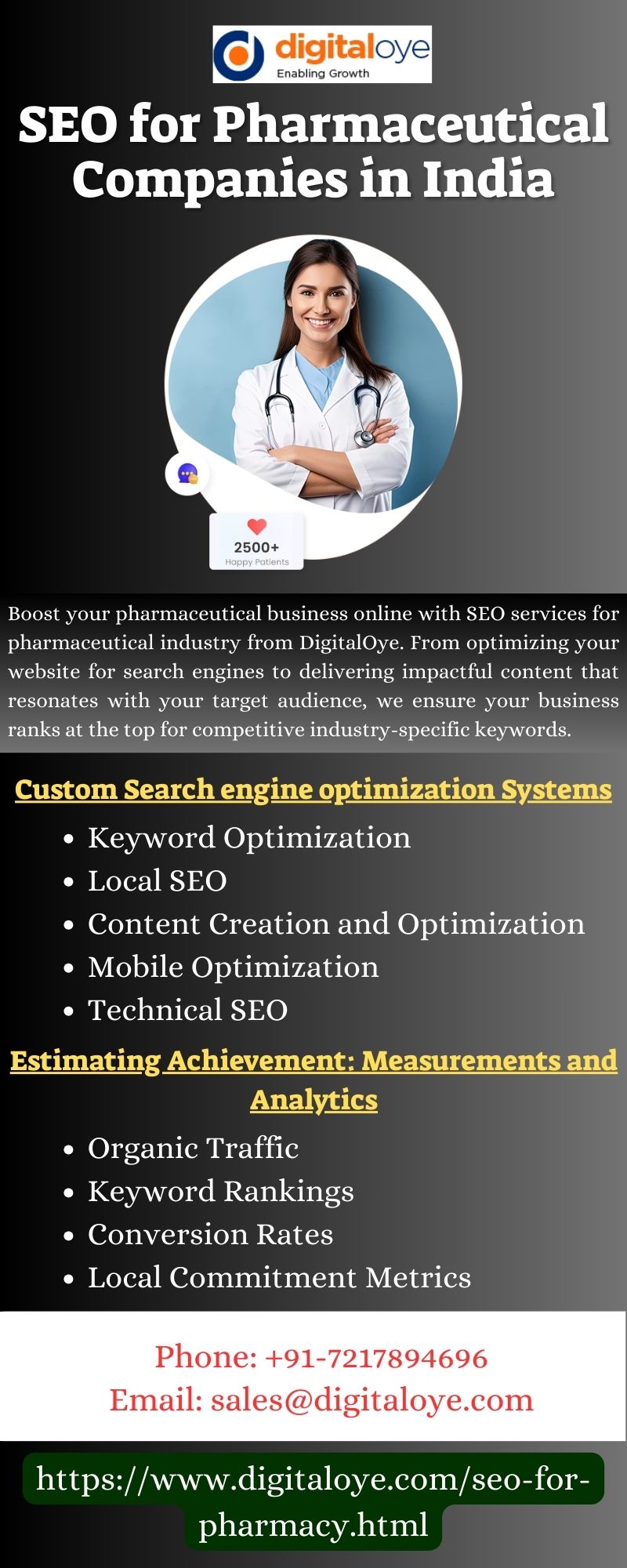 | Descripción | As a trusted name in SEO for Pharmaceutical Companies in India, DigitalOye specializes in crafting tailored strategies to enhance your online visibility, attract high-intent customers, and drive measurable growth. Explore how our comprehensive SEO solutions can transform your online presence visit https://www.digitaloye.com/seo-for-pharmacy.html |