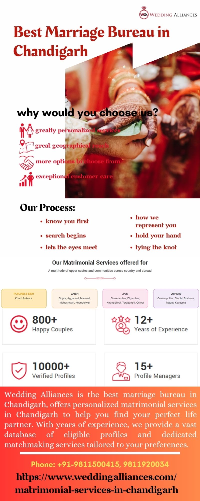 | Descripción | Wedding Alliances is the best marriage bureau in Chandigarh, offers personalized matrimonial services in Chandigarh to help you find your perfect life partner. With years of experience, we provide a vast database of eligible profiles and dedicated matchmaking services tailored to your preferences. Join our network today and take the first step toward a fulfilling and happy marriage. For more de... |