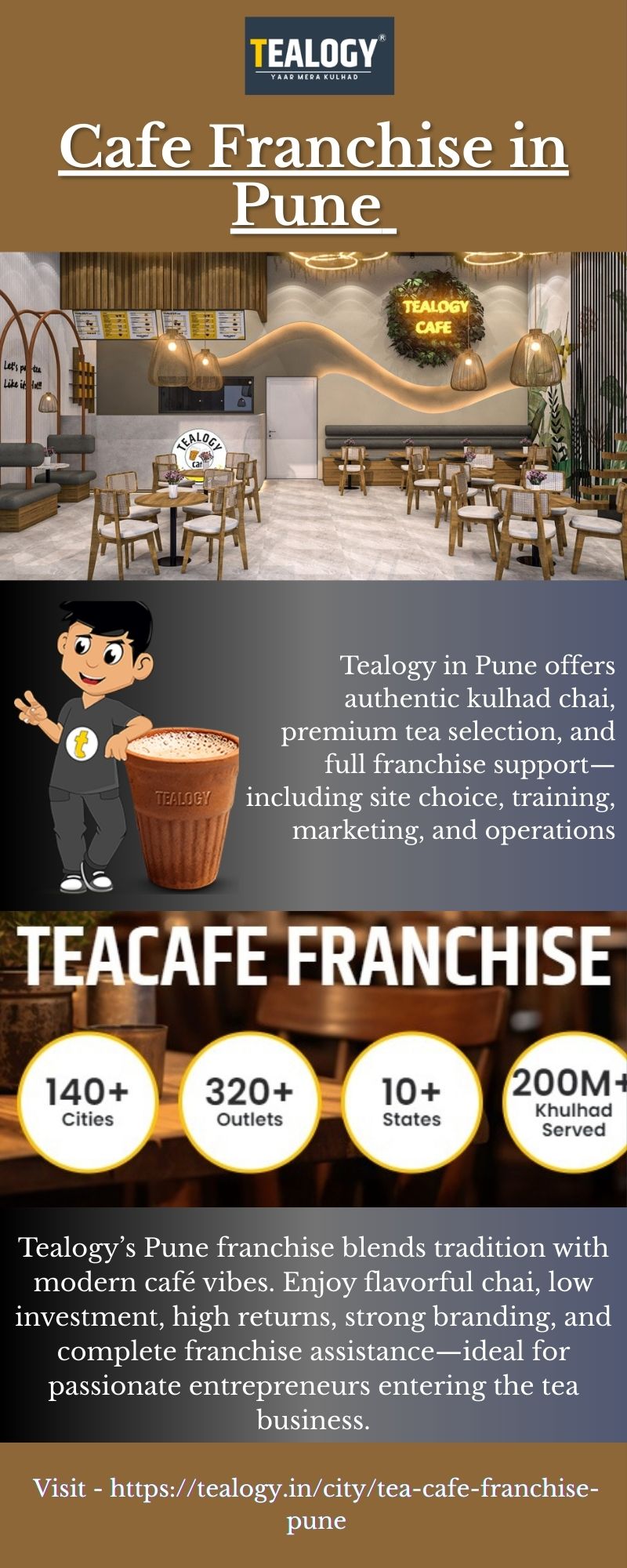 | Descripción | Tealogy offers a leading Cafe Franchise in Pune —authentic kulhad chai, premium teas, low‑investment model, full support in site selection, training, marketing, and streamlined operations. To know more, please visit - https://tealogy.in/city/tea-cafe-franchise-pune |