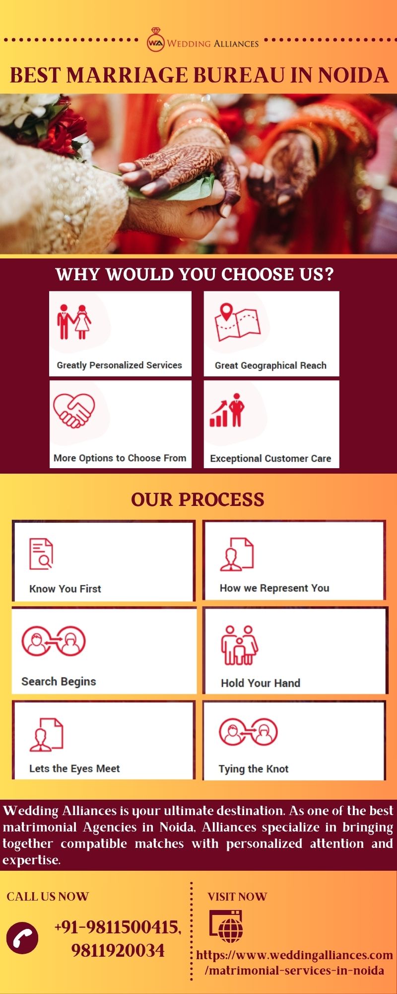 | Descripción | Know more about the best marriage Bureau in Noida. Wedding Alliances is your ultimate destination. As one of the best matrimonial Agencies in Noida, Alliances specializes in bringing together compatible matches with personalized attention and expertise. Our extensive database, rigorous screening process, and dedicated team ensure you find the perfect partner. For more visit https://www.weddinga... |