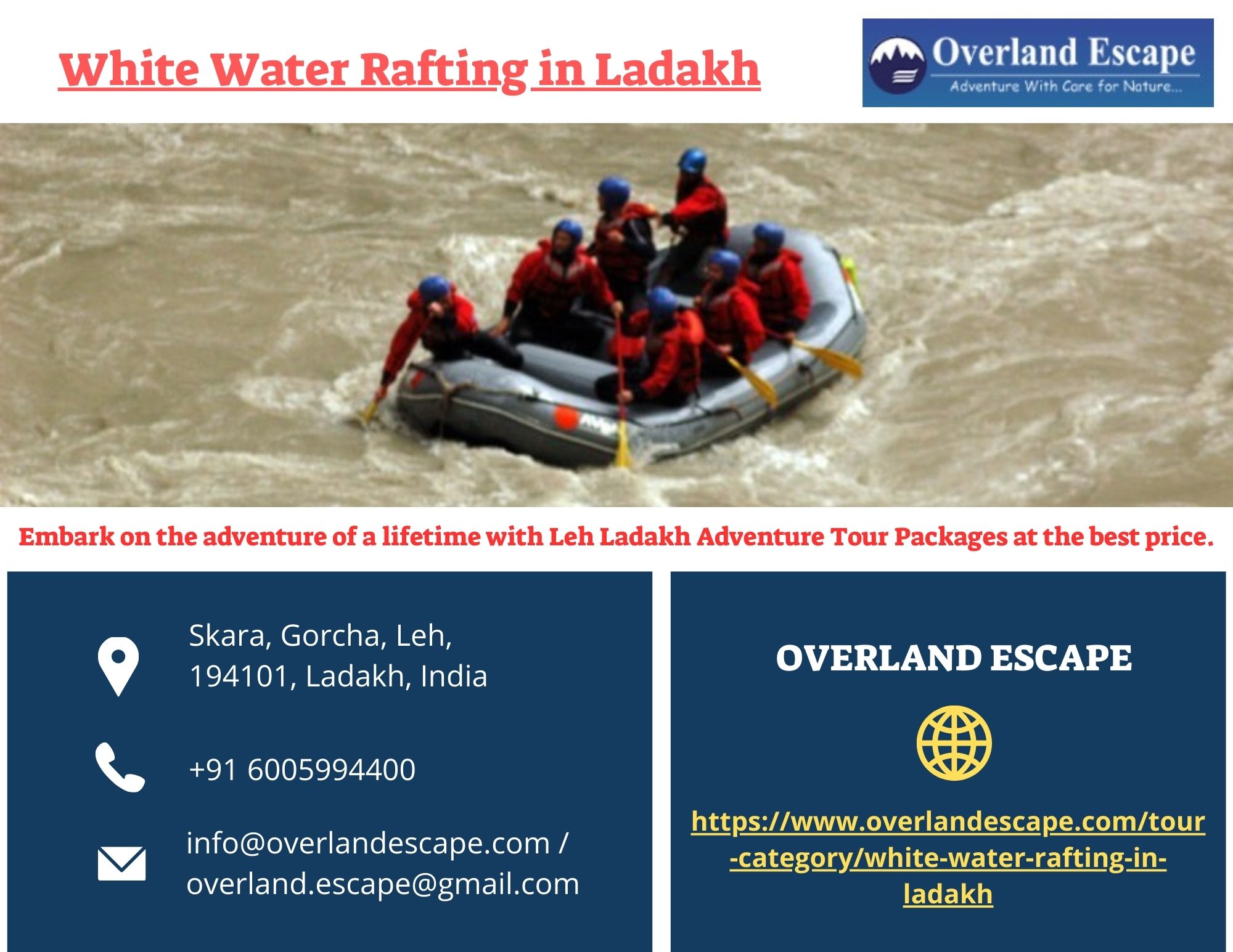 | Descripción | Experience the thrill of a lifetime with White Water Rafting in Ladakh. Overland Escape for an adrenaline-pumping adventure through the breathtaking landscapes of Ladakh. Our expert guides ensure a safe and exhilarating journey down the Indus and Zanskar rivers, navigating through some of the most challenging rapids. To know more visit https://www.overlandescape.com/tour-category/white-water-ra... |