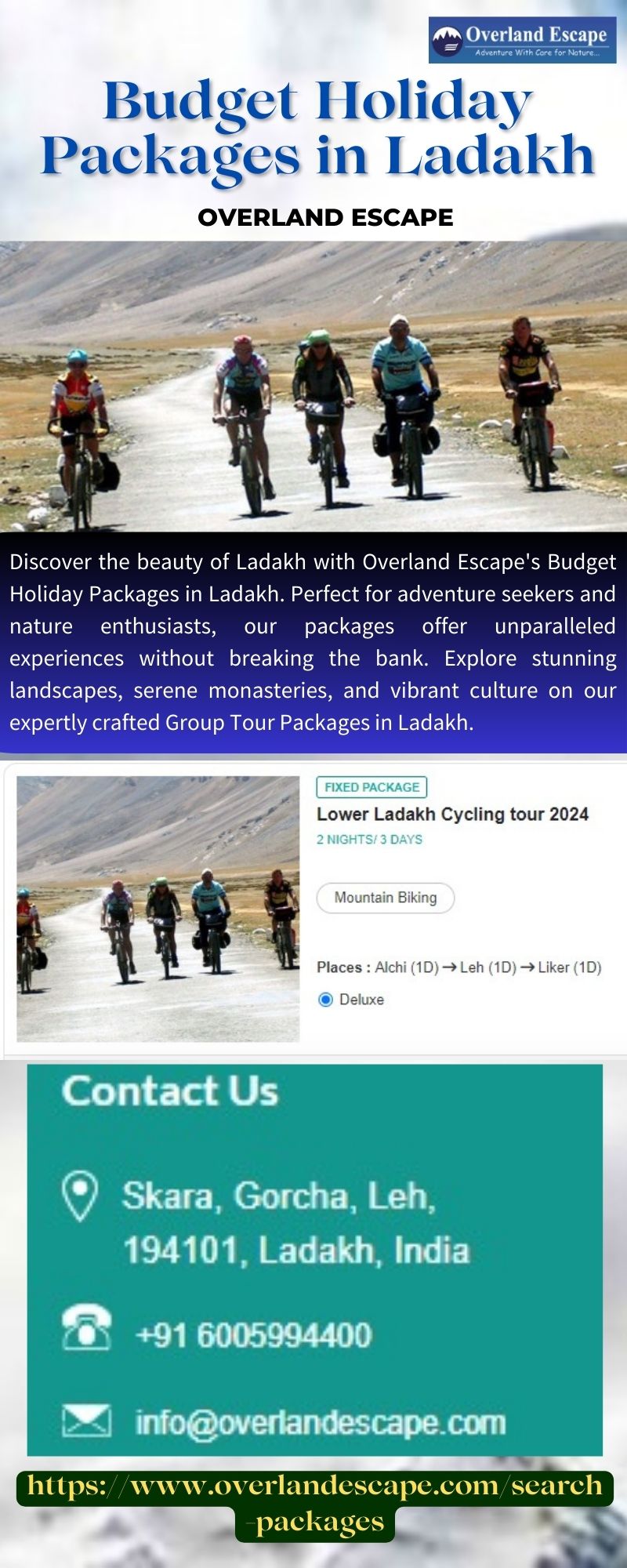 | Descripción | Discover the beauty of Ladakh with Overland Escape's Budget Holiday Packages in Ladakh. Perfect for adventure seekers and nature enthusiasts, our packages offer unparalleled experiences without breaking the bank. Join us for a journey of a lifetime. For more visit https://www.overlandescape.com/search-packages |