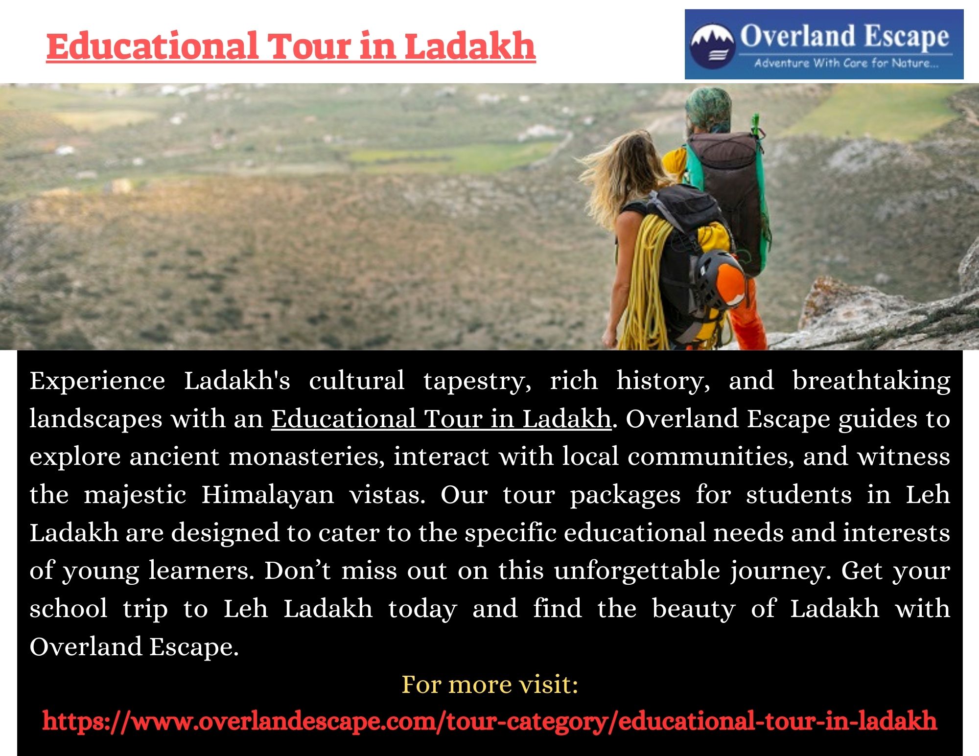 Descripción Experience Ladakh's cultural tapestry, rich history, and breathtaking landscapes with an Educational Tour in Ladakh. Overland Escape guides to explore ancient monasteries, interact with local communities, and witness the majestic Himalayan vistas. Our tour packages for students in Leh Ladakh are designed to cater to the specific educational needs and interests of young learners. For more visit ...