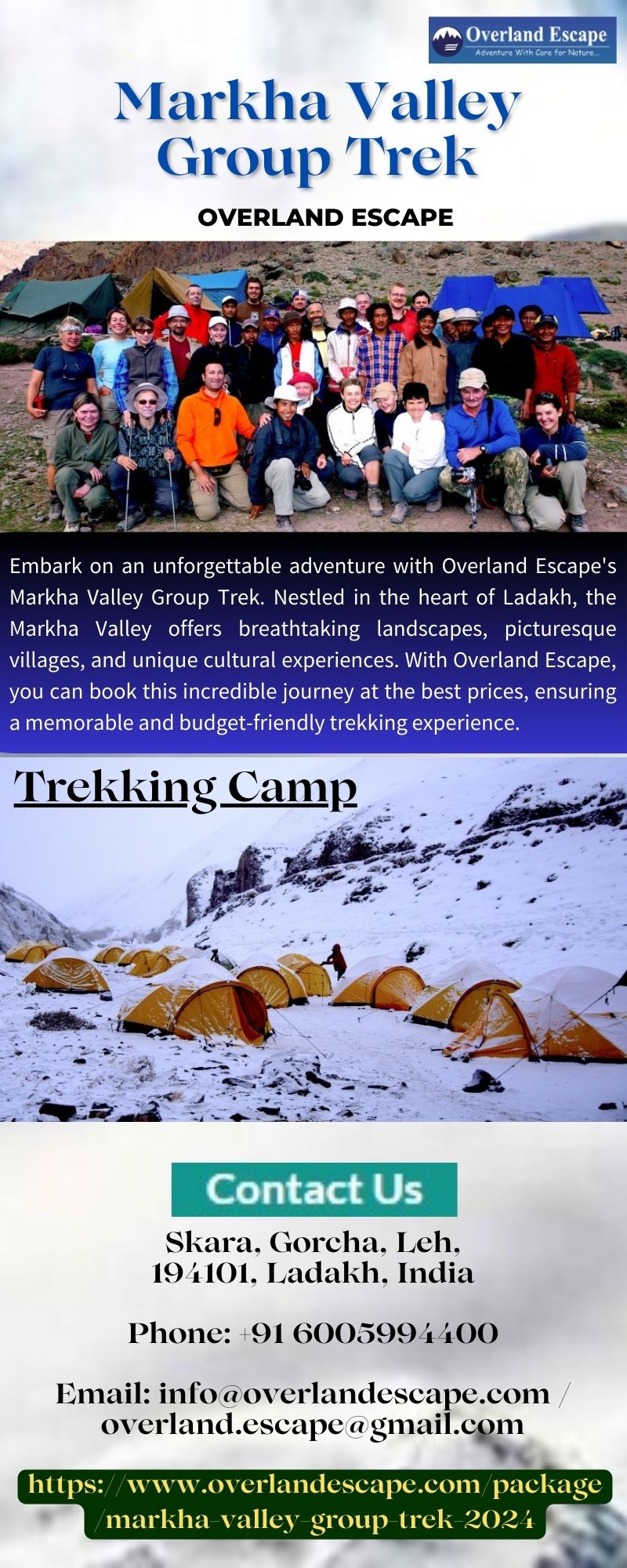 | Description | Embark on an unforgettable adventure with Overland Escape's Markha Valley Group Trek. Nestled in the heart of Ladakh, the Markha Valley offers breathtaking landscapes, picturesque villages, and unique cultural experiences. With Overland Escape, you can book this incredible journey at the best prices, ensuring a memorable and budget-friendly trekking experience. Learn more at https://www.overlan... |