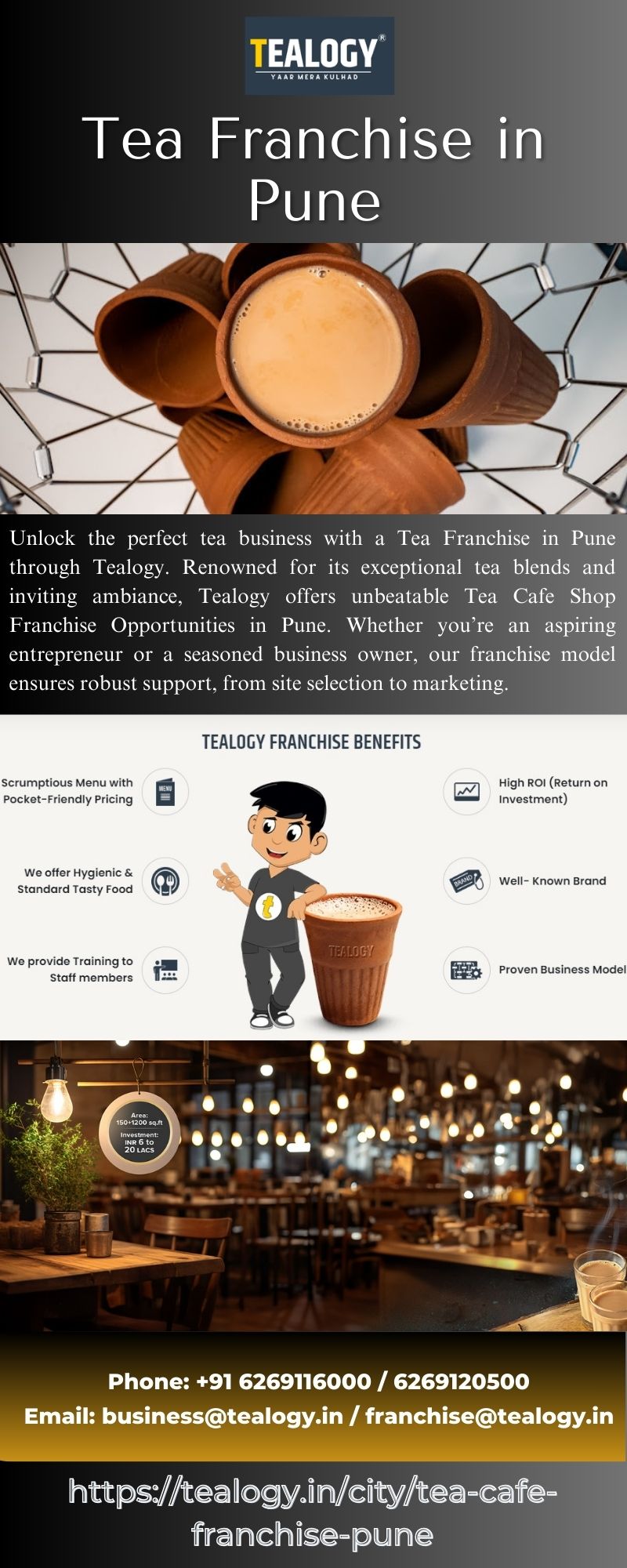 | Descripción | Unlock the perfect tea business with a Tea Franchise in Pune through Tealogy. Renowned for its exceptional tea blends and inviting ambiance, Tealogy offers unbeatable Tea Cafe Shop Franchise Opportunities in Pune. Whether you’re an aspiring entrepreneur or a seasoned business owner, our franchise model ensures robust support, from site selection to marketing. Learn more at https://tealogy.in/ci... |