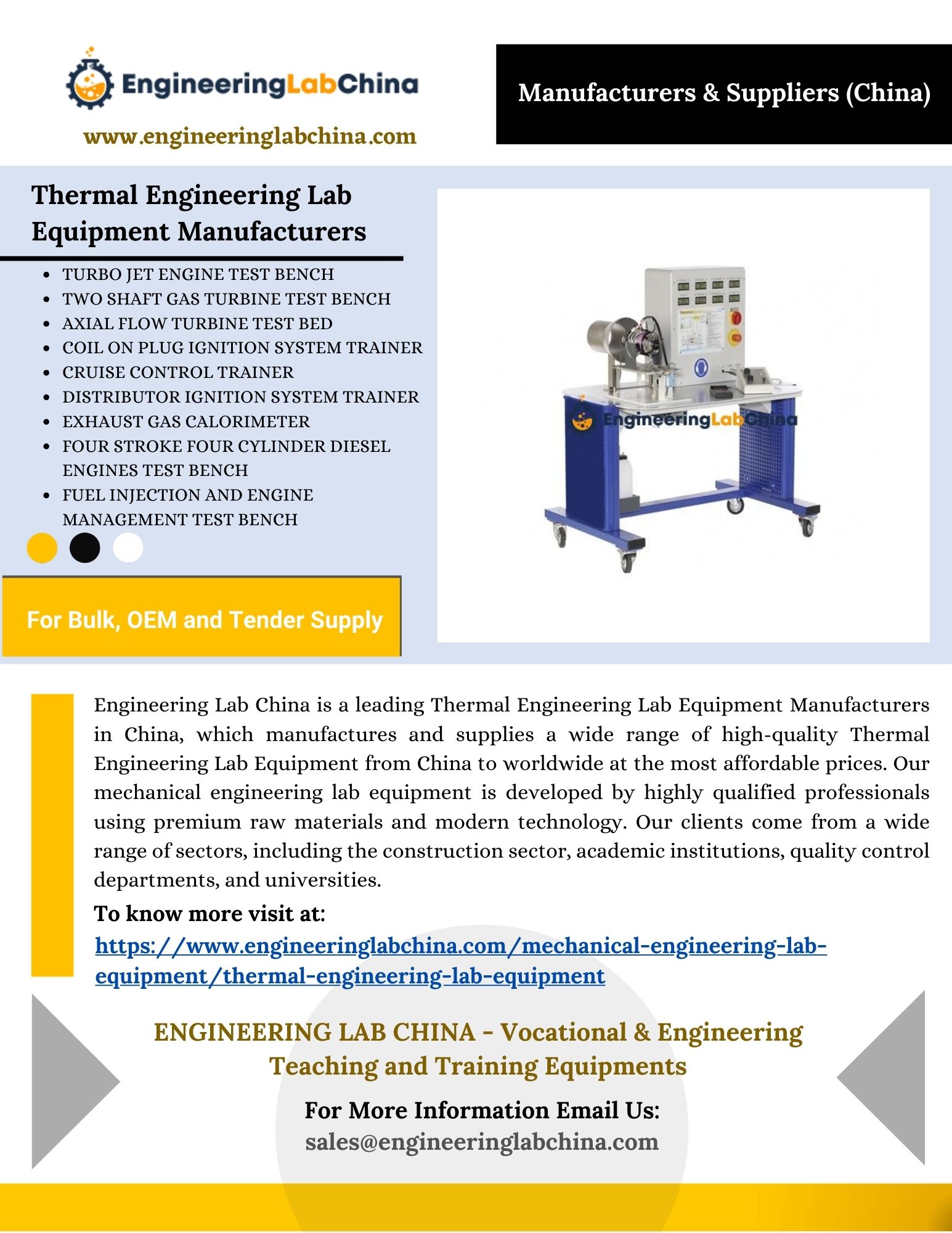 Descripción Discover top-tier thermal engineering lab solutions with EngineeringLabChina, your trusted Thermal Engineering Lab Equipment Manufacturers and Suppliers. We specialize in providing high-quality, precision-engineered lab equipment that meets the demands of educational and research institutions globally. Our products are designed to enhance the learning experience, offering reliable performance a...