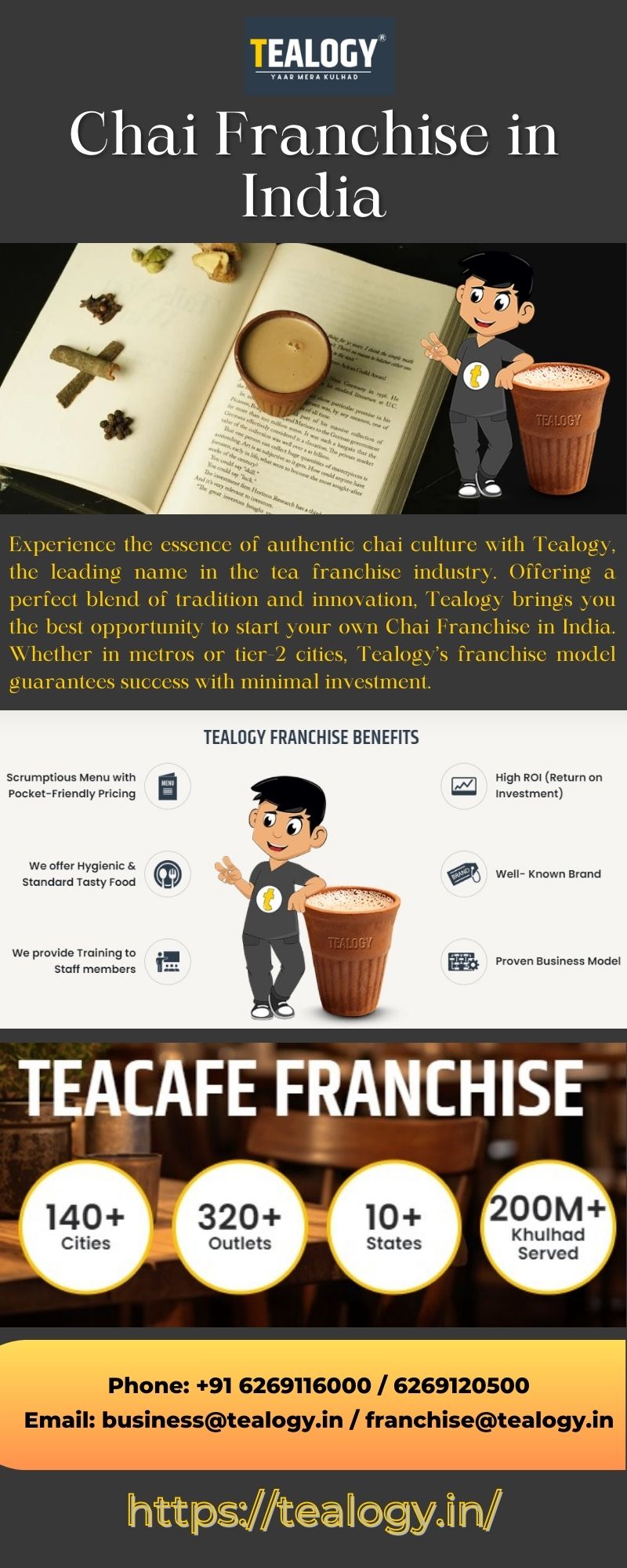 | Description | Offering a perfect blend of tradition and innovation, Tealogy brings you the best opportunity to start your own Chai Franchise in India. Join hands with Tealogy and brew a future steeped in tradition and profitability. For more visit https://tealogy.in/ |