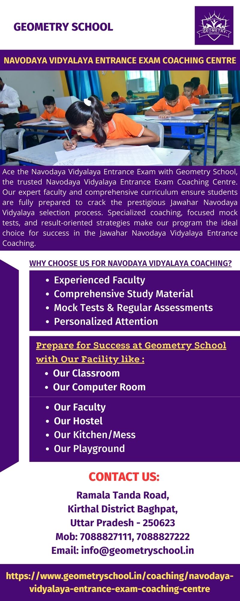 | Descripción | Ace the Navodaya Vidyalaya Entrance Exam with Geometry School, the trusted Navodaya Vidyalaya Entrance Exam Coaching Centre. Our expert faculty and comprehensive curriculum ensure students are fully prepared to crack the prestigious Jawahar Navodaya Vidyalaya selection process. Specialized coaching, focused mock tests, and result-oriented strategies make our program the ideal choice for success... |