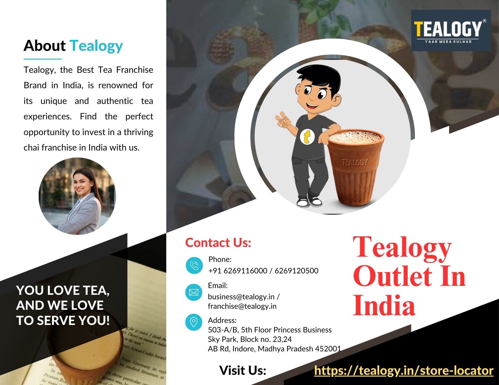 | Descripción | Get the finest tea experience with Tealogy Outlet in India. Tealogy brings you a wide range of exquisite teas, crafted with passion and expertise. Whether you're a fan of classic Assam or exotic blends, our stores offer something for every tea lover. Find Tealogy stores near you to explore our premium selection, enjoy tea-tasting sessions, and find the perfect tea to suit your palate. Know more... |
