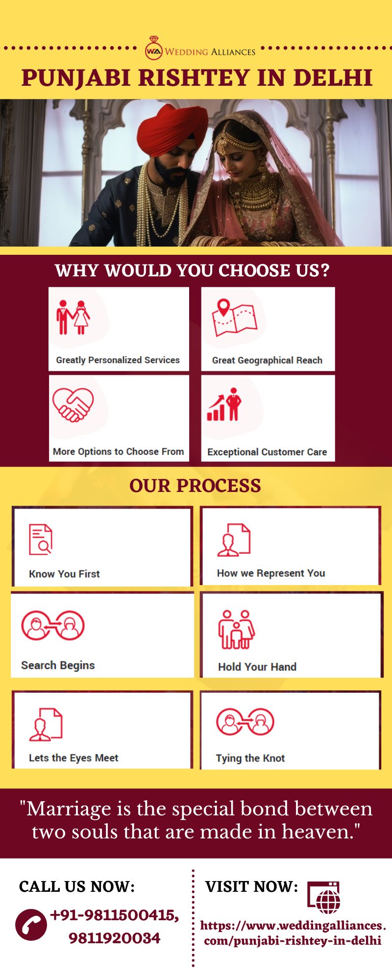 Descripción Finding the perfect Punjabi Rishtey in Delhi is effortless with Wedding Alliances, a trusted Punjabi Marriage Bureau in Delhi. With years of expertise, we specialize in connecting like-minded Punjabi families, ensuring a seamless and traditional matchmaking experience. Begin your journey to a happy and prosperous marriage with Wedding Alliances, where perfect matches are made with care and prec...