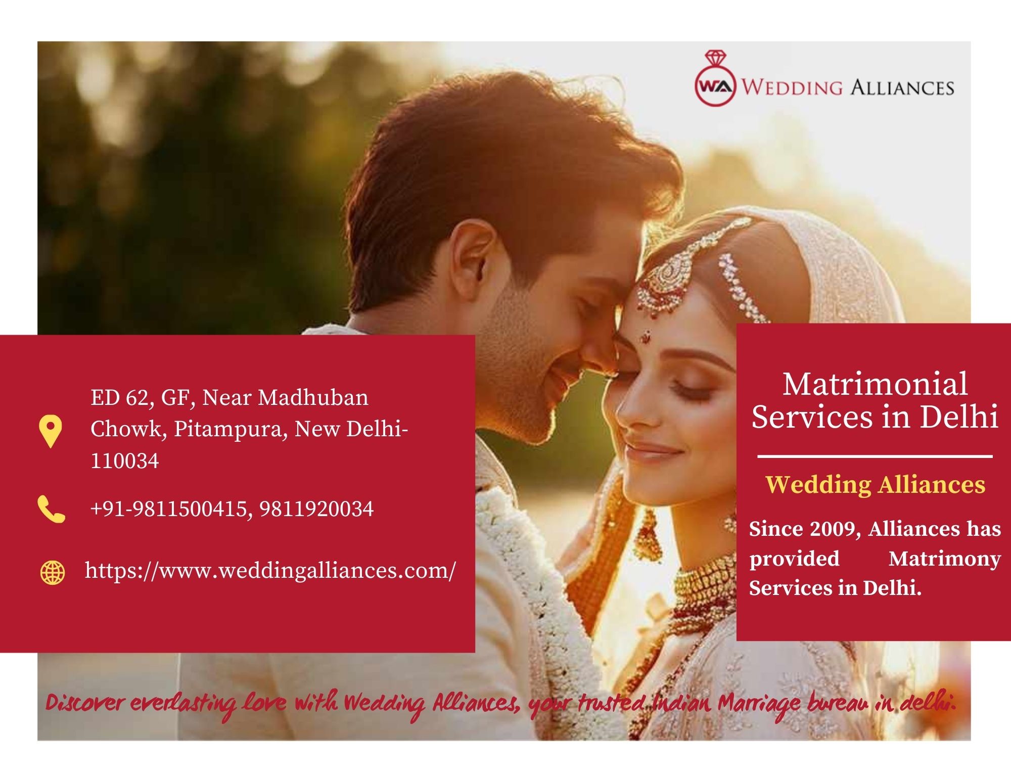 | Description | Find your perfect life partner with Wedding Alliances, the most trusted name in Matrimonial Services in Delhi NCR. Our expert relationship managers offer tailored matchmaking, verified profiles, and dedicated support to help you find a compatible match. Let us help you find your perfect life partner visit https://www.weddingalliances.com/ |