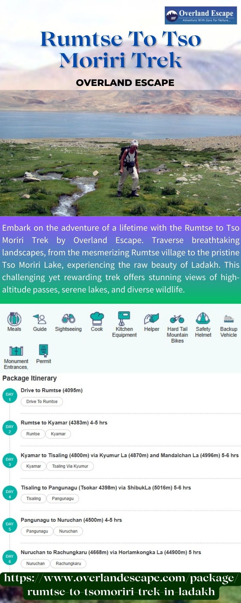 | Descripción | Embark on the adventure of a lifetime with the Rumtse to Tso Moriri Trek by Overland Escape. Traverse breathtaking landscapes, from the mesmerizing Rumtse village to the pristine Tso Moriri Lake, experiencing the raw beauty of Ladakh. This challenging yet rewarding trek offers stunning views of high-altitude passes, serene lakes, and diverse wildlife. For more details visit https://www.overland... |