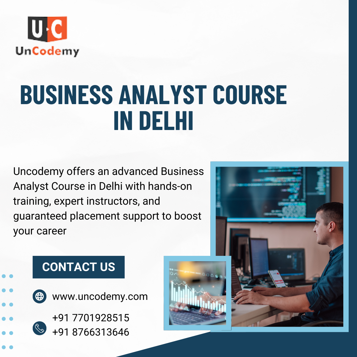 | Descripción | The Business Analyst course in Delhi offered by Uncodemy provides comprehensive training in data analysis, process mapping, and project management. With hands-on experience in tools like SQL, Excel, and Tableau, it prepares aspiring professionals for business analyst roles across various industries, enhancing both technical and strategic skills. |