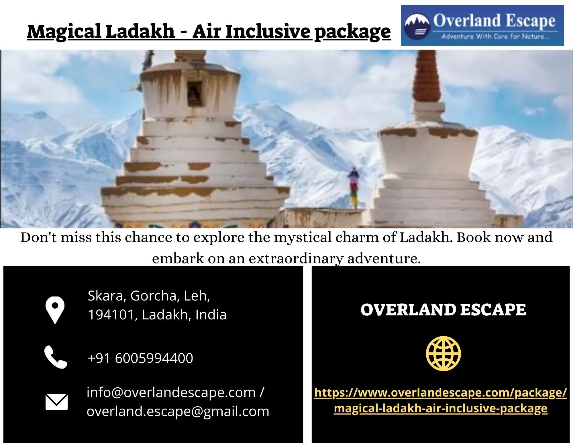 | Descripción | Discover the breathtaking beauty of Ladakh with our Magical Ladakh Air Inclusive Package 2025. Immerse yourself in the enchanting landscapes, ancient monasteries, and serene lakes with a well-planned itinerary. Book Magical Ladakh Air Inclusive Package for 6 Nights 7 Days and enjoy hassle-free travel with flights, comfortable stays, guided tours, and delightful local experiences. To know more d... |