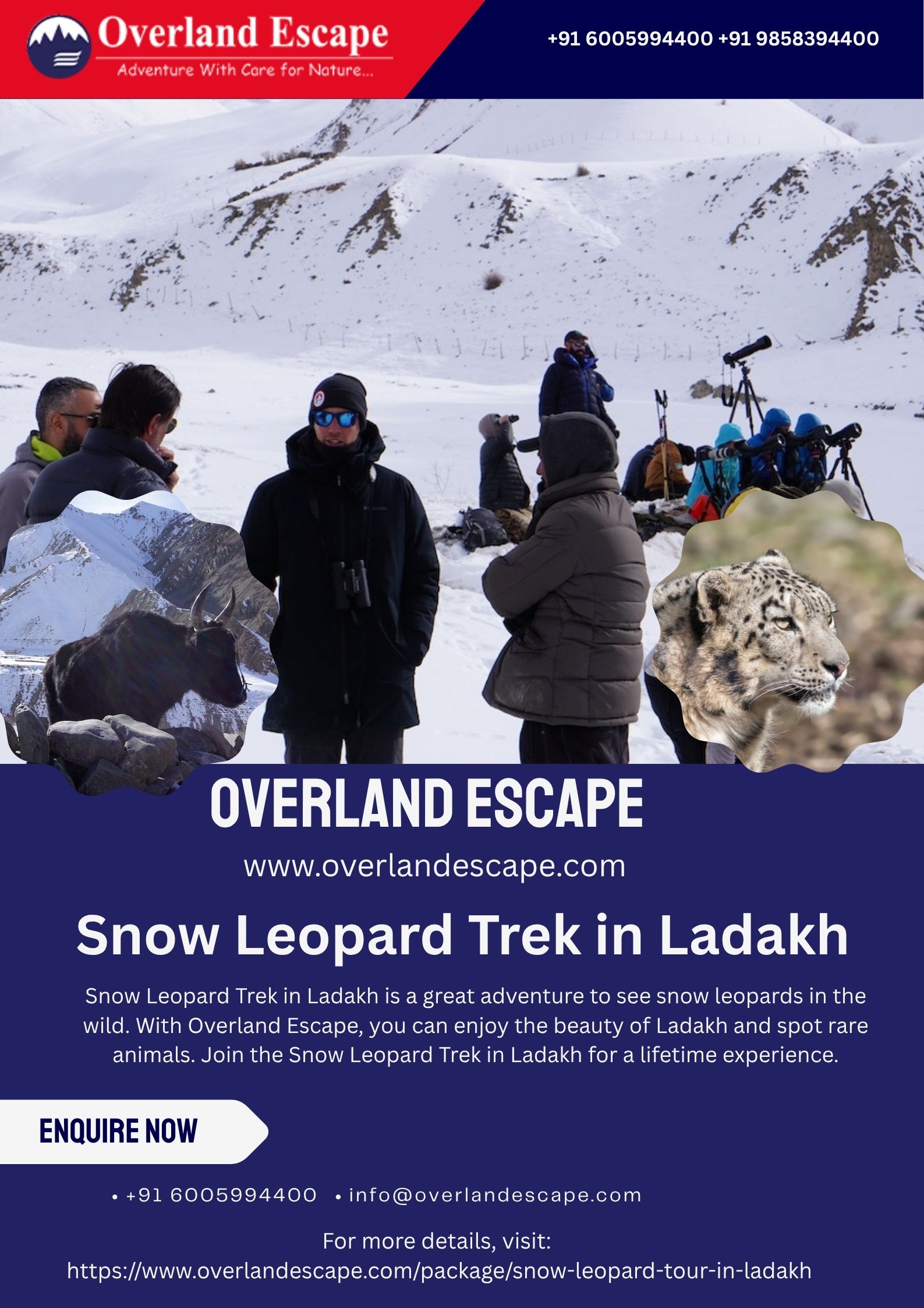 | Descripción | Experience the amazing Snow Leopard Trek in Ladakh with Overland Escape. This trek gives you a chance to see the rare snow leopard in its natural home. The Snow Leopard Trek in Ladakh is perfect for wildlife lovers and adventure seekers. For more details, visit: https://www.overlandescape.com/package/snow-leopard-tour-in-ladakh |