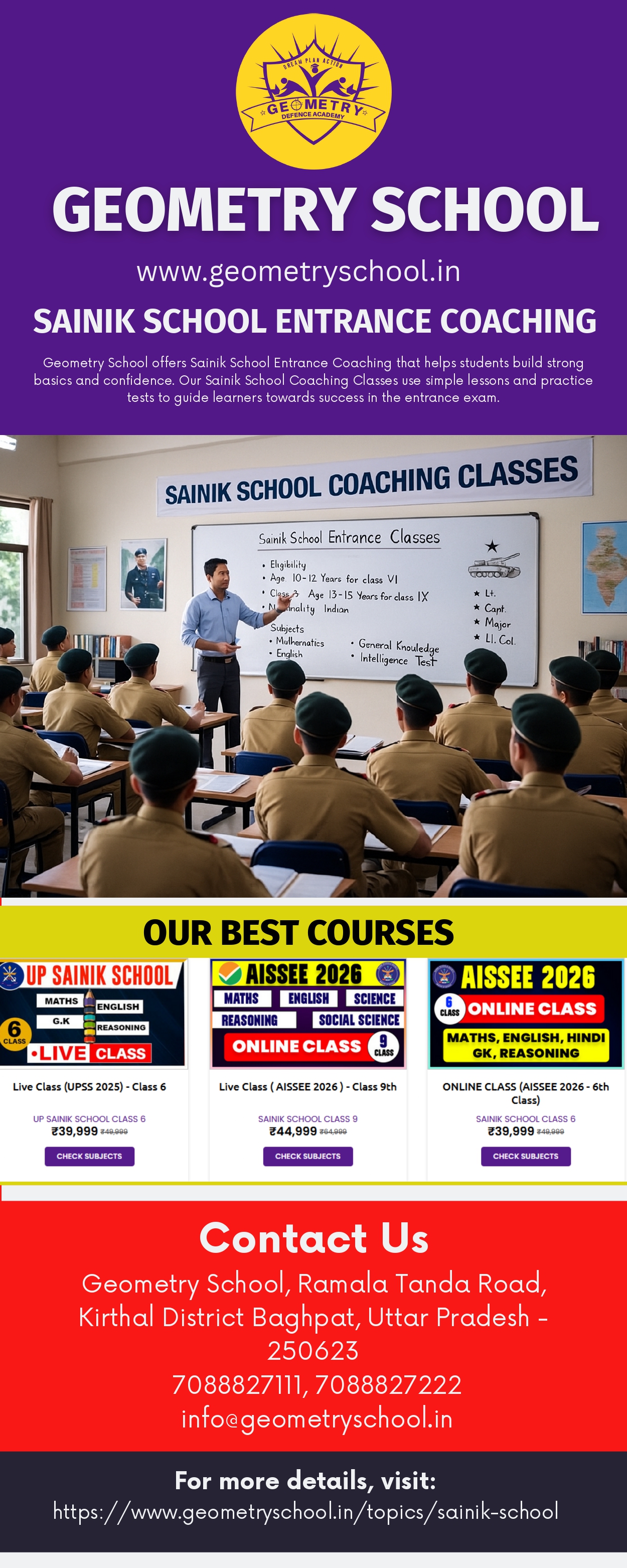 | Descripción | Geometry School offers the best Sainik School Entrance Coaching with simple lessons and expert guidance. Our Sainik School Coaching Classes help students build strong basics, improve confidence, and prepare well for exams with clear, high-quality, and fully original learning support. For more details, visit: https://www.geometryschool.in/topics/sainik-school |