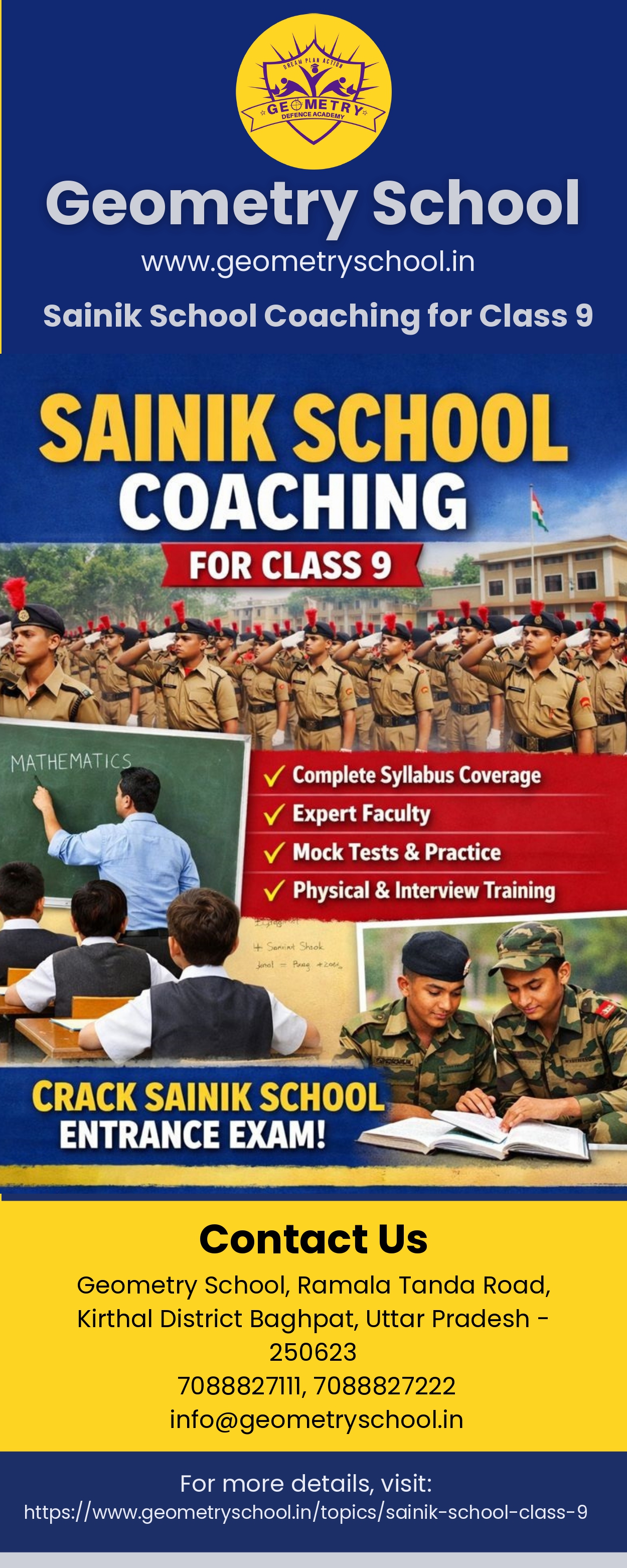 | Descripción | Geometry School offers Sainik School Coaching for Class 9 with expert teachers, easy lessons, and Online Classes for Sainik School Class 9 Entrance Exam to help students succeed confidently today. Enquire now! For more details, visit: https://www.geometryschool.in/topics/sainik-school-class-9 |